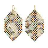 Confetti Mesh Earrings measure 1.5" wide by 2.35" long including the 14 karat gold filled ear wires. Each earring signed with our logo link.