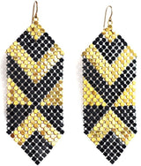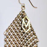Deco, by way of '60s op-art. Mod geometric panel earrings, hand-pieced with mesh from two vintage purses (circa 1960-1980s.) These statement earrings catch all the light.