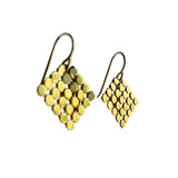 Small but mighty - the classic gold earrings in a mini square. Pieced from vintage mesh purses (circa 1950s-1980s) and suspended from hand-hammered armatures. Earrings measure 0.75" across and 1" long, including the 14k gold filled ear wires. Each earring signed.